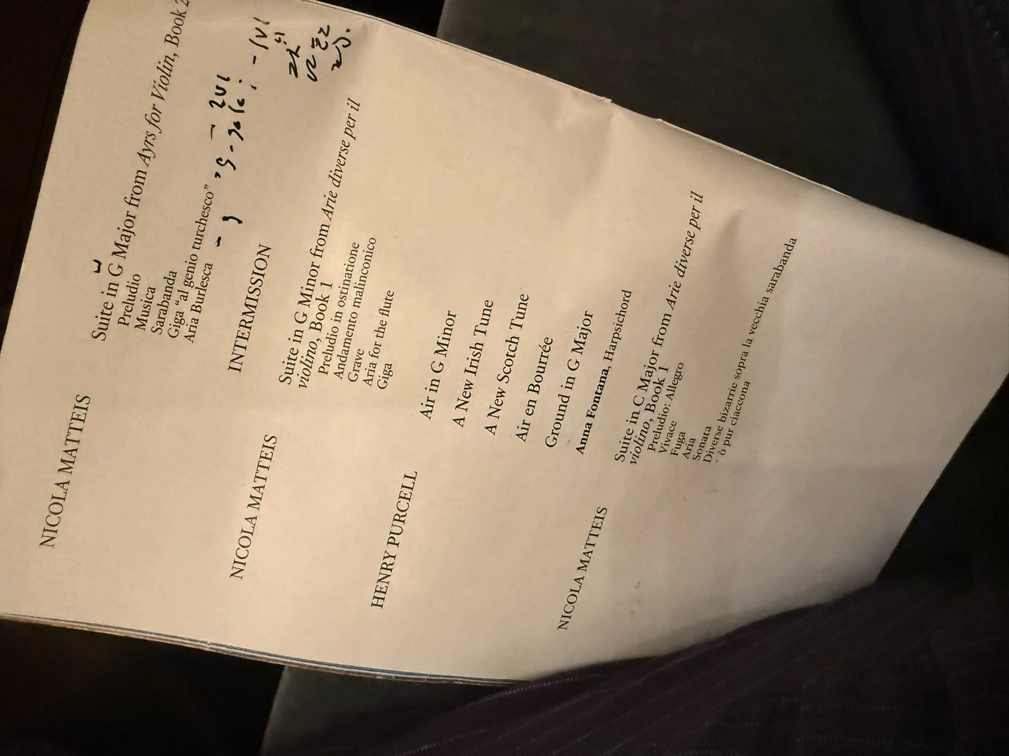How Matteis learned the French suite style. How he learned the allemande. In school, allemande is taught as a German dance, but Anna on harpsichord said it was fashionable everywhere at the time. No one is telling me!