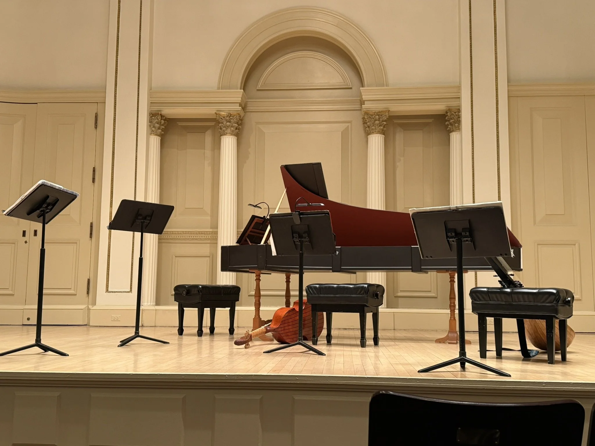 沢山知識を集めても、彼らの前では役に立たない。心が溶けていく。カーネギーで出会ったことがない音と流れ。流れる音楽が瑞々しい。生生しい。遊びに溢れている。音楽愛に満ち溢れている。4人すべてが主役で、中心が存在しない。メロディもハーモニーも刻みも全て面白い。大きな音が鳴っていても、小さなささやきも、ガンバのバルドメロは、どんどん歌え、しゃべれとアマンディーヌとアルバを、チェンバロを左から順に次々語らせ、テオルボ と バロック・ギターのナチョがフリースタイルを繰り広げたりする。中心が全く分からない。気が付くと話す人が変わっている。大きな声でも小さな声でも。メットオケの分厚い音色や複雑な音の層の中心に、シルビオのクラリネットが聴こえるときは、あのでかいピットが物凄く澄んでいるときだ。ナチョのフリースタイルはそういう面白さだった。