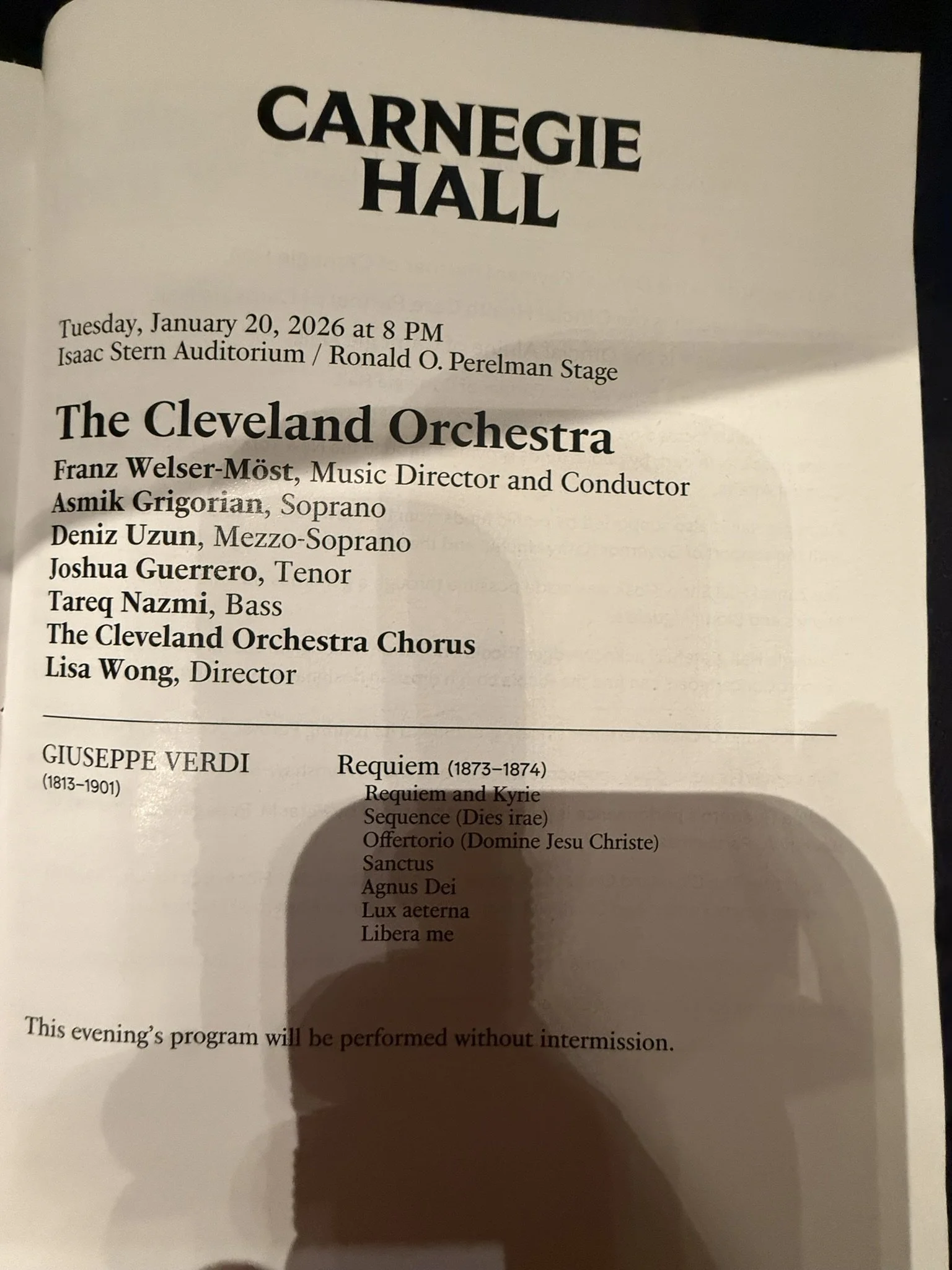 Verdi’s Requiem resonates with the heart. The Cleveland Orchestra and Most, with the Cleveland Choir at Carnegie Hall on 1.20.2026, the opening Requiem aeternam dona eis, Domine—“Grant them eternal rest, O Lord”—felt as if the sound was standing behind me. It was a different orchestra and voices compared to Bellini’s I Puritani, which I had heard at the Met just the two days earlier. Rather than placing my mind in the space, the Cleveland's Verdi’s Requiem appeared within my consciousness.