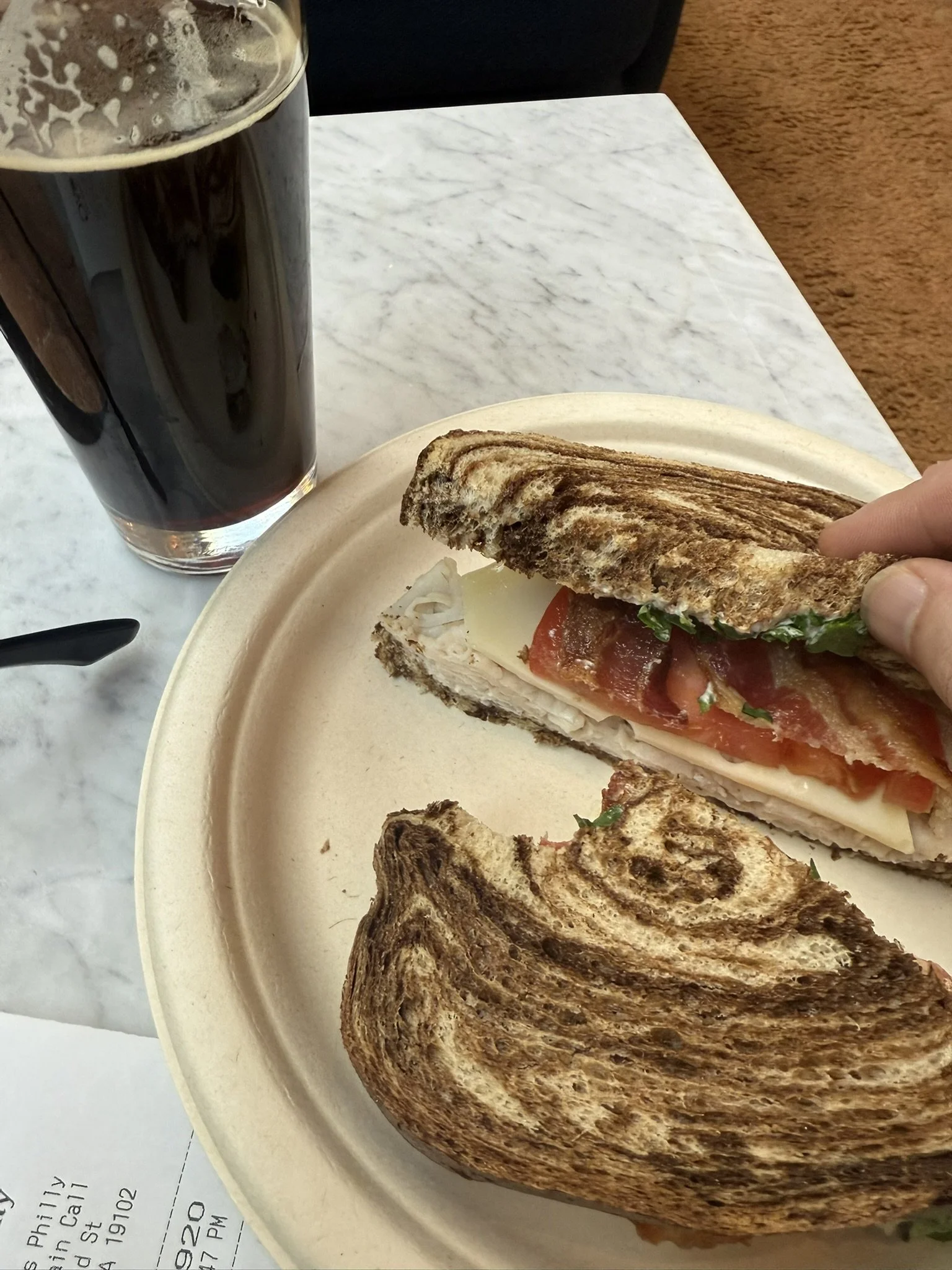 ターキーサンドとドラフトスタウトで32ドル。マンハッタンではありえないおいしさと価格。