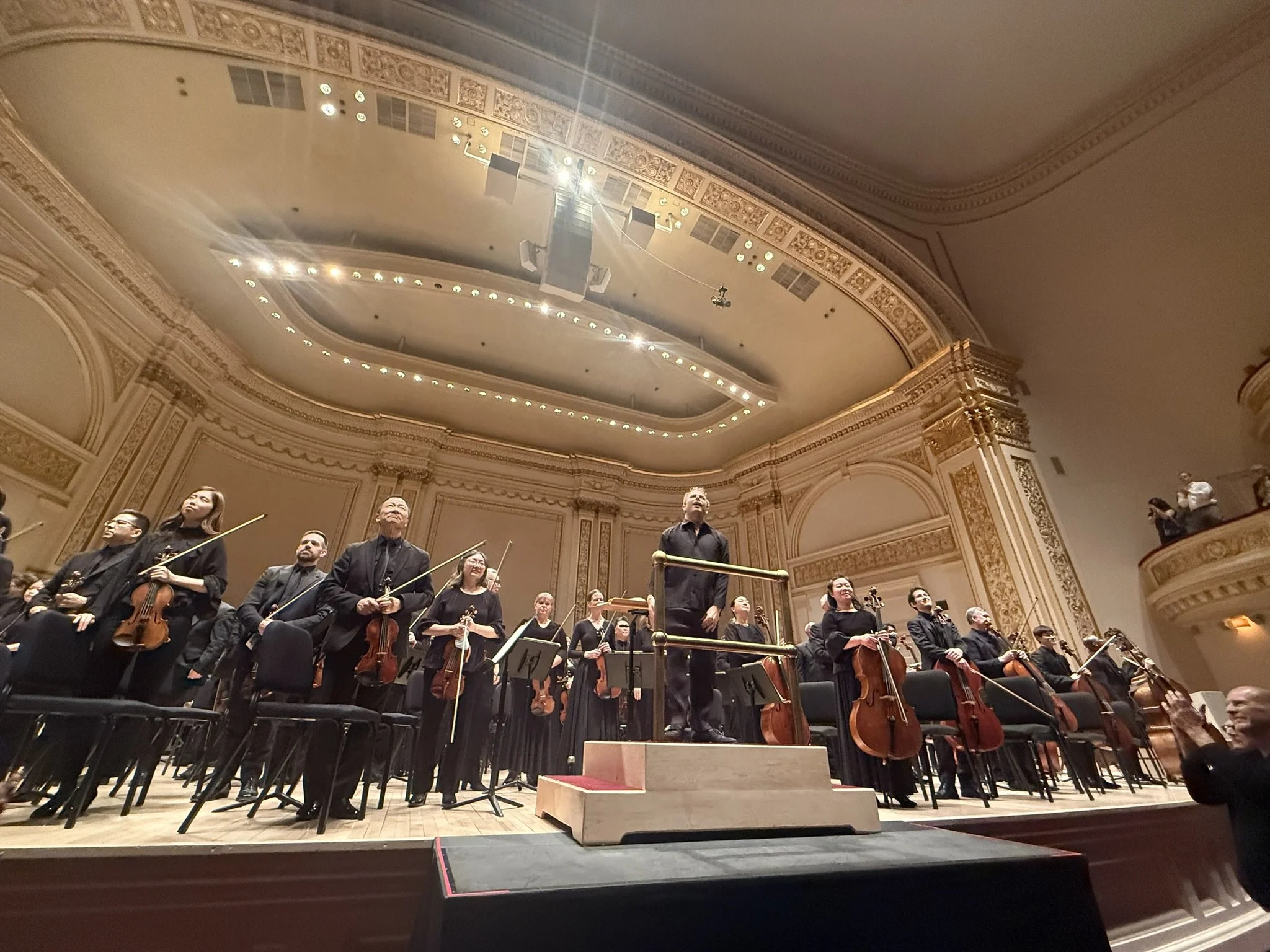 Yannick began by placing his baton on the stand; the timpani struck sharply, like the curtain rising on a new scene. Then he took up the baton, beginning a dance. Strings flowed smoothly while winds ticked peculiarly—a unique Yannick lilt. Sehr getragen und gesangvoll: the middle section was very slow, warm, and gentle, melting into Carnegie Hall’s space. Returning to the strange dance, sudden shocks erupted, followed by elegant, rich, soul-stirring dances; I closed my eyes at that point.